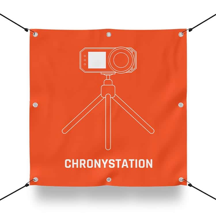 Hinweisschild CHRONYSTATION für Airsoft Anlagen.