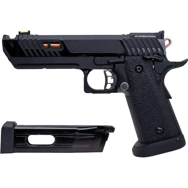 Diese 1:1-Vollmetallnachbildung bietet die gleiche außergewöhnliche Leistung wie ihr älterer Bruder, der STI Combat Master, hebt die Dinge jedoch mit einer kompletten Überarbeitung der Außenseiten auf die nächste Stufe. Wird seinem Ruf und Bekanntheitsgrad aus der John-Wick-Filmreihe gerecht.