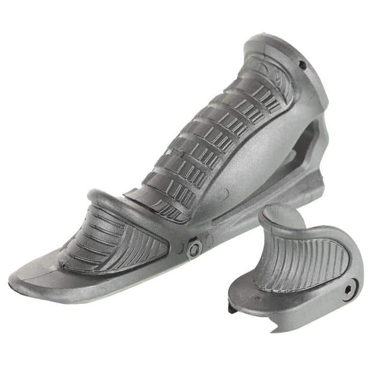 Dieser Frongriff lasst sich auf jeder 20mm Weaverschiene montieren und passt sich geschmeidig der Hand an. Die Daumenmulde ermöglicht es seitlich besser Kraft auf die Waffe auszuüben, was wiederum ein schnelleres und besseres anvisieren ermöglicht.