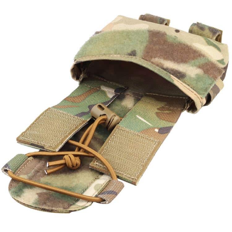 Die Delta Six MK2 Batterie Pouch ist eine Batterie Tasche / Halterung zu Montage an FAST Tactical Helmen. Die Tasche verfügt auf der Rückseite über Klettflächen und ist so geschnitten, dass sie 1:1 auf die Klettflächen des Tactical Helms passt und dort sicher hält.