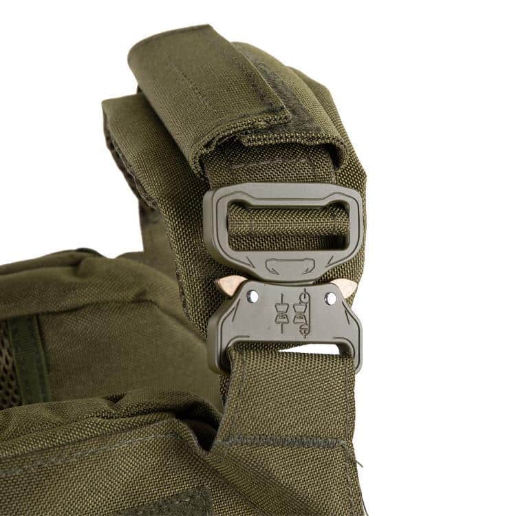 Der Plattenträger lässt sich auf jeden Anwender individuell anpassen. Dazu lassen sich die Gurte im Bereich der Schultern, als auch im Bauchbereich stufenlos in der Länge einstellen. Zum schnellen Ausziehen gibt es TPU Schnellverschlüsse mit stabilen Polymer Haken im Bereich der Schulter- und Bauchgurte.