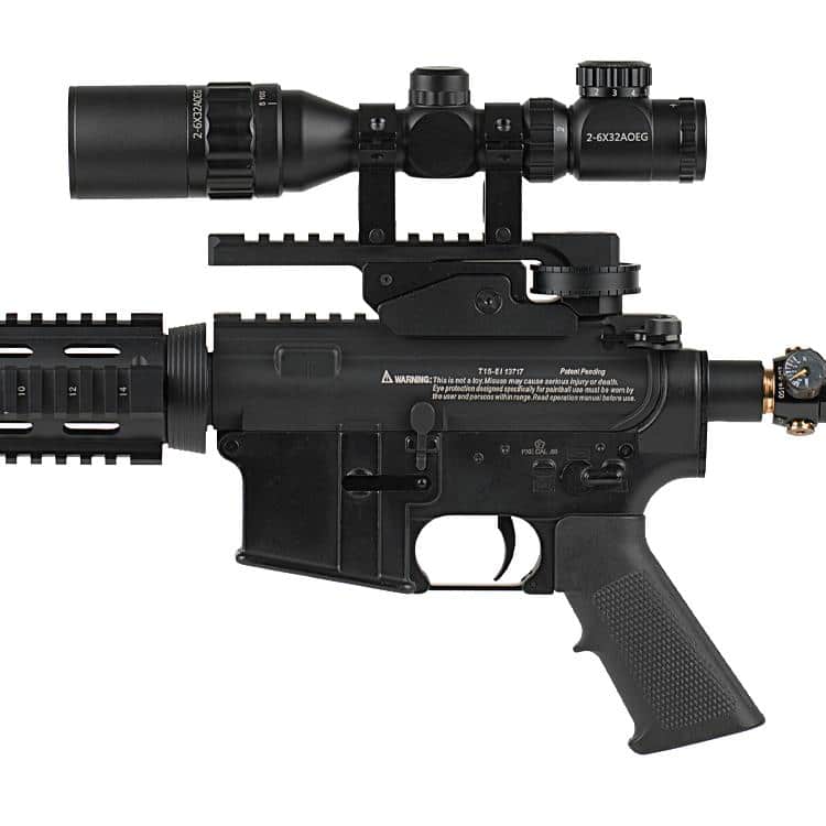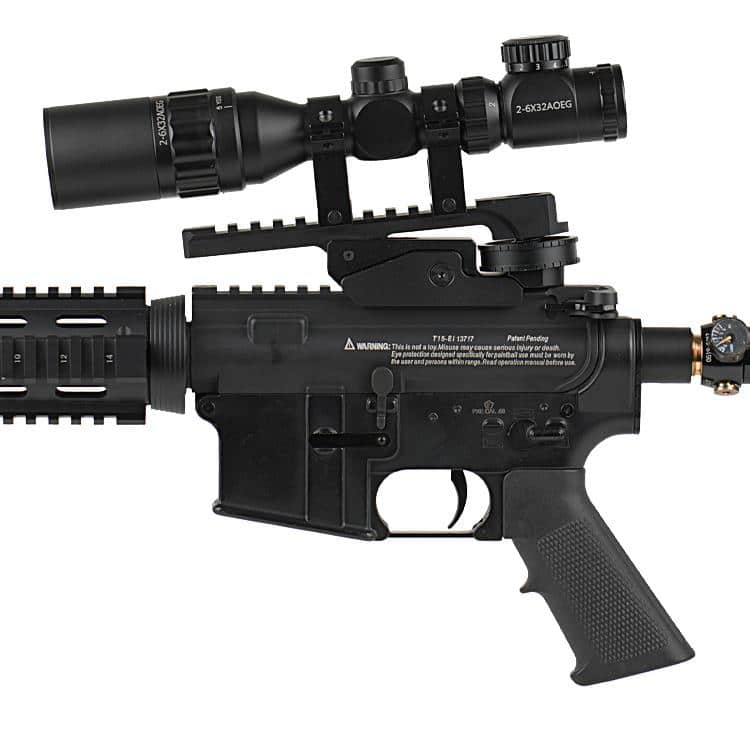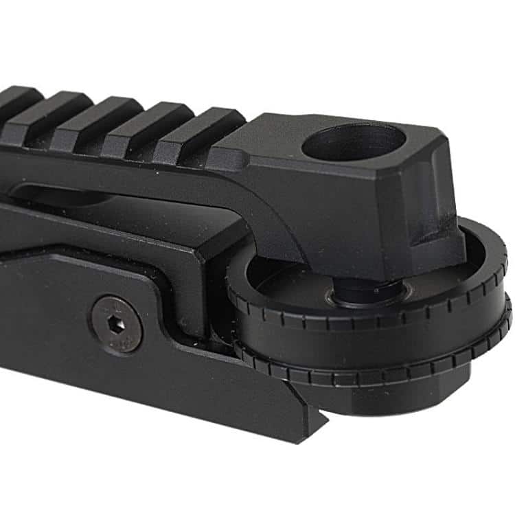 Der Neigungswinkel lässt sich ohne Werkzeug von 0 bis 7 Grad einstellen. Das Stellrad ist mit einem Rastenmechanismus versehen, so dass man das Visier Millimeter für Millimeter feinjustieren kann. Durch den extrem großen Neigungswinkel sind unter Verwendung von First Strike Paintballs Distanzschüsse von bis zu 100 Metern und mehr möglich.