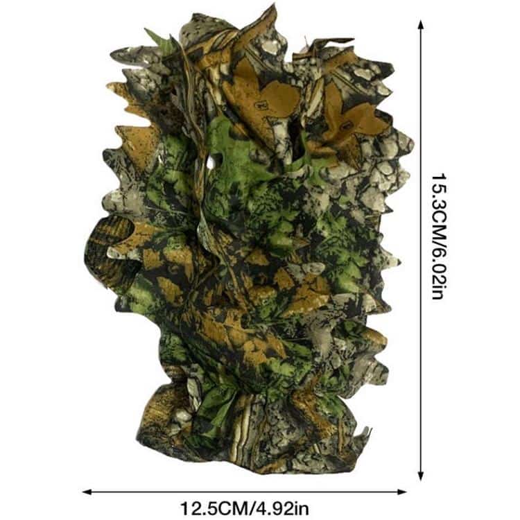 - Optimal camouflage in the terrain thanks to the applied 3D camouflage in a leaf look