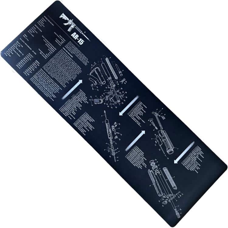 The mat is made of a non-slip neoprene material that can be easily washed off after use. The motif is an AR-15 printed on as a schematic drawing.