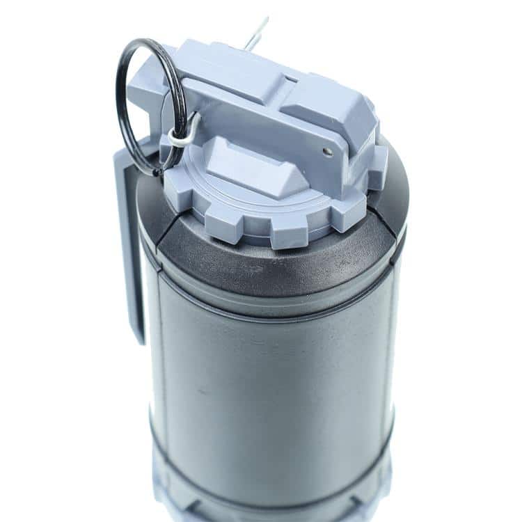 Spring-powered multi-purpose airsoft grenade with a new design and realistic appearance. The grenade is opened by impact and throws up to 130 BBs around. The impact sensitivity of the grenade can be changed using a special adjustment system. The grenade does not need to be filled with gas or any other medium, which saves money. To fill it, just unscrew the bottom cap. Since it does not need to be filled with gas and only works with spring pressure, this grenade is under < 0.5 joules and is therefore suitable for ages 14 and up.