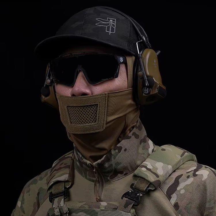 The perfect combination of balaclava and mesh mask for airsoft sports.