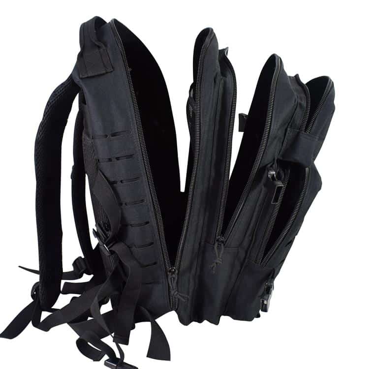 Tactical backpack with a capacity of 36 L. Made of tear-resistant polyester with an additional PVC coating on the inside to protect against moisture. It is suitable for tactical and survival use, but also for everyday use.