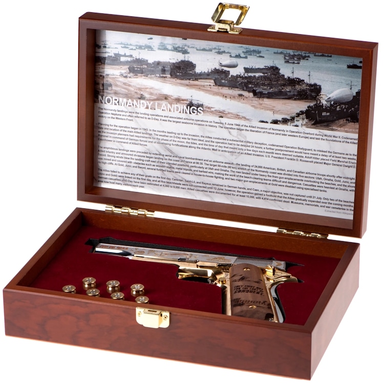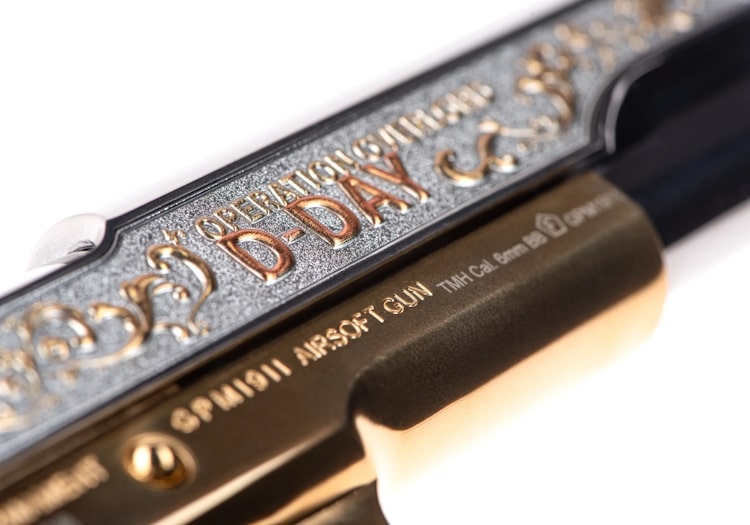 The GPM1911 D-Day Limited Edition from G&G Armament is an exclusive gas blowback pistol whose detailed design commemorates the historic Normandy landings. Made of robust metal, it boasts a realistic weight of 880g and an overall length of 220mm. The 108mm inner barrel ensures precise shots, while the blowback system delivers an authentic shooting experience. The magazine holds 26 6mm BBs and is optimized for use with green gas. This limited special edition combines reliability with historical symbolism, making it a true highlight for collectors and airsoft enthusiasts.