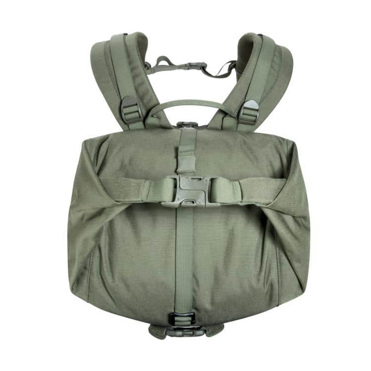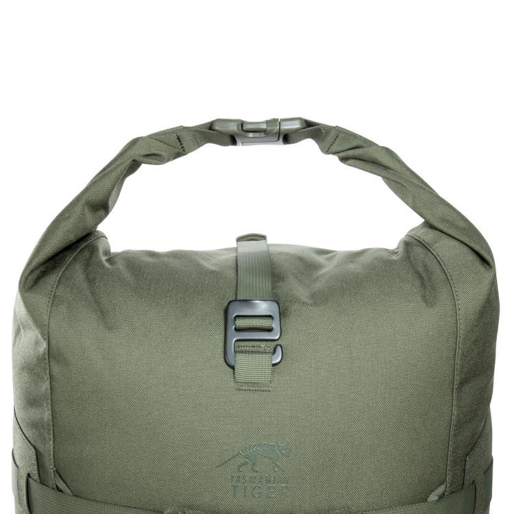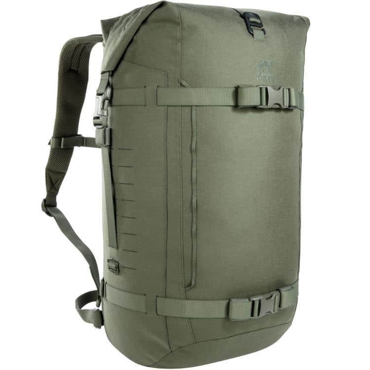The TT Sentinel 35 WP is suitable for light and possibly bulky equipment. It has a roll-top closure and can be compressed if necessary using completely circumferential straps. Laser-cut MOLLE on the sides allows for individual additions. A webbing system on the front is used to hold additional equipment.
