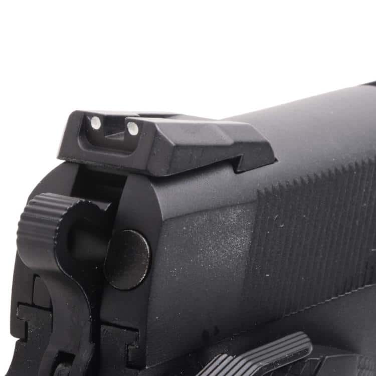 The main improvements are effective grooves on the slide, highly visible iron sights, ambidextrous safety lever, picatinny rail under the barrel and threading in the barrel. The outer construction is almost entirely made of metal - only the handles are made of plastic.