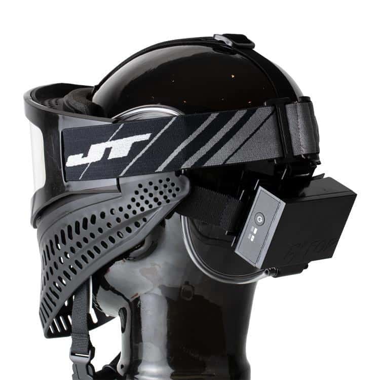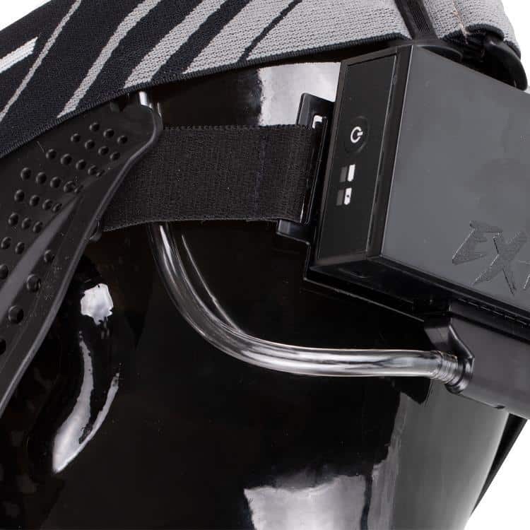 Das ExFog Antifog System ist eine externe Belüftung für Paintball Masken und Airsoft Schutzbrillen. Die Ventilatoreinheit mit dem elektischen Luftgebläse wird mit Hilfe des im Lieferumfang enthaltenen Stirnbandes am Hinterkopf des Spielers befestigt.