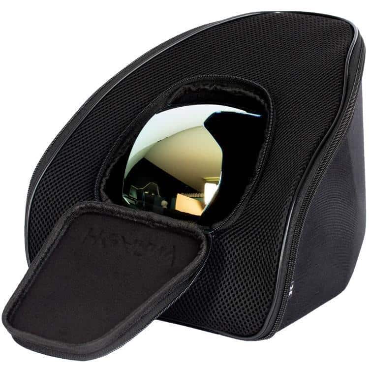 Am Deckel befindet sich eine zusätzliche Tasche, die genug Platz für Deine Maskengläser Wertsachen oder andere Dinge bietet.
