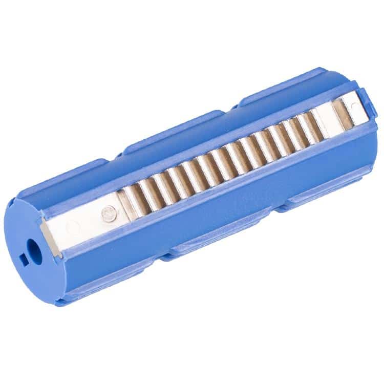 Sehr stabiler Nylonfiber Piston von Element in der Vollzahn-Ausführung. Besonderheiten dieser Ausführung sind die 14 Stahl-Zähne. Aufgrund der gehärteten Stahl-Zähne ist dieser Piston geeignet für Tunings bis zu einer M140 Tuningfeder.