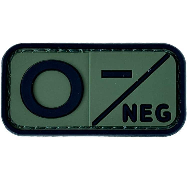 Paintball / Airsoft PVC Klettpatch Blutgruppe, Medic (0 neg, oliv)