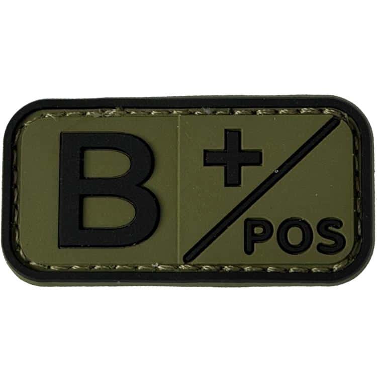 Paintball / Airsoft PVC Klettpatch Blutgruppe, Medic (B pos, oliv)