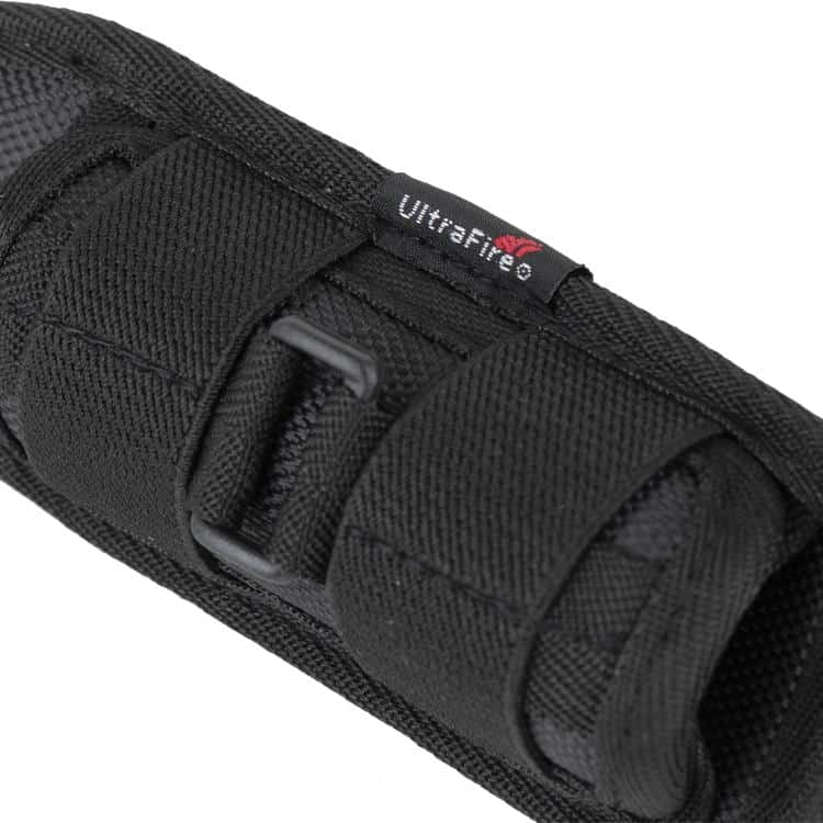 Universal Tasche für Taschenlampen oder andere, zylindrische Gegenstände mit drehbarer Halterung. Diese Tasche lässt sich z.B. an den Schulterstraps von taktischen Westen anbringen und somit Räume und Gelände ausleuchten. Alternativ kann man die Tasche auch bequem am Gürtel anbringen. Die Position der Lampe lässt sich dabei mittels drehbarer Halterung in die gewünschte Richtung einstellen. So hat man die Hände frei und trotzdem eine gute Ausleuchtung der vor einem liegenden Bereiche.