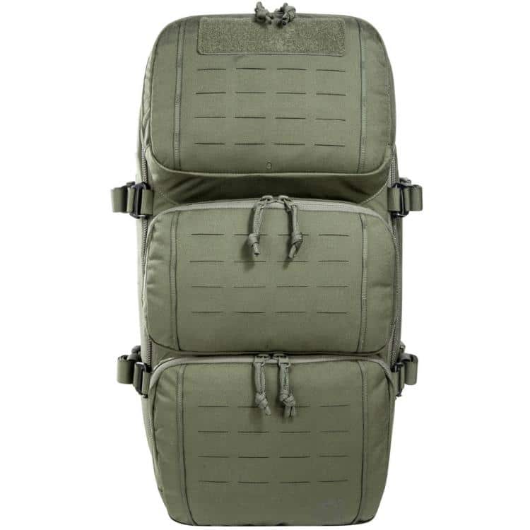 Das neu entwickelte Y2-Tragesystem des TT Modular Combat Pack 24 SL bietet eine sehr große Variationsbreite bei der Einstellung der Rückenlänge und eignet sich sowohl für zierliche als auch für sehr große Personen. Das Hauptfach des 24-Liter-Rucksacks ist innen mit MOLLE-Klettflächen zur individuellen Bestückung belegt. Der TT Modular Combat Pack 24 SL verfügt zudem über drei Fronttaschen mit Unterteilungen, die untere bietet Platz für drei Magazine. Die Schultergurte lassen sich in der Länge verstellen, um den Rucksack über Schutzwesten zu tragen.